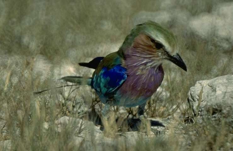Eine Gabelracke, einer der farbenprächtigsten Vögel des südlichen Afrika