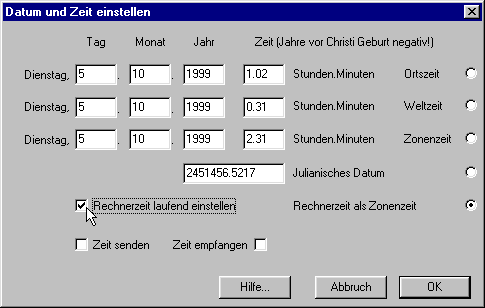 aber auch direkt als Julianisches Datum. Auch die Zeit aus der Rechneruhr