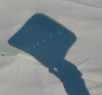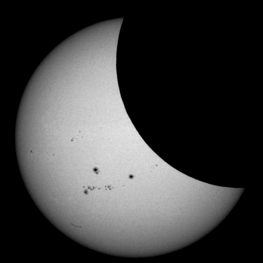 der Verfinsterung verfolgen, was im Teleskop wegen der vielen Sonnenflecken besonders reizvoll war. Die Temperatur war beim ersten Kontakt 23.8 °C und