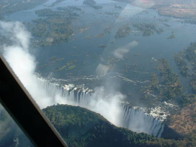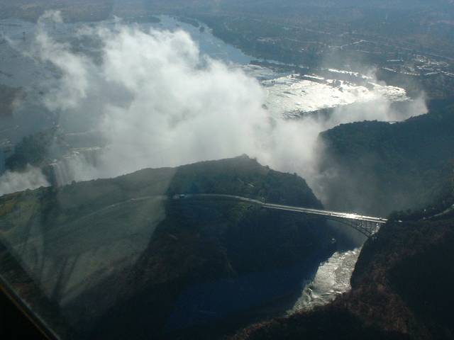 so rechtzeitig, so daß wir uns von den benachbarten Victoria Falls noch naßregnen lassen konnten.